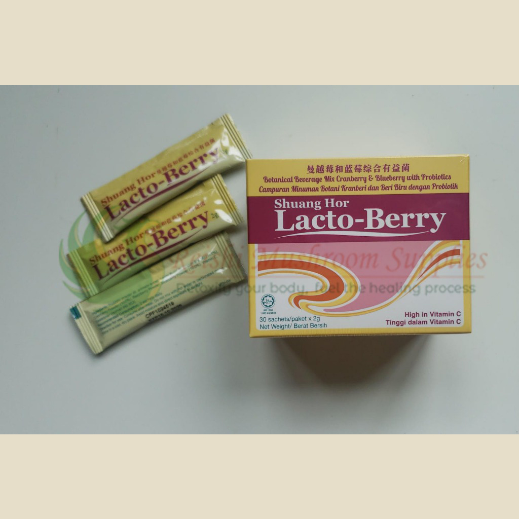 Lacto-Berry is a formulation comprising specially selected strains of probiotics (mainly lactic acid bacteria) from Europe together with 3 types of berries. There are at least 2 billion probiotics per sachet of Lacto-Berry.