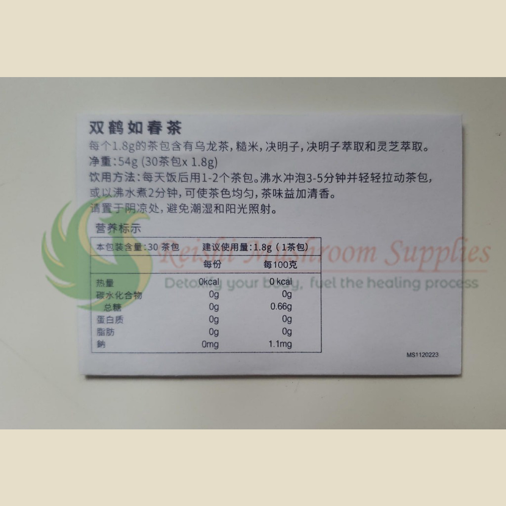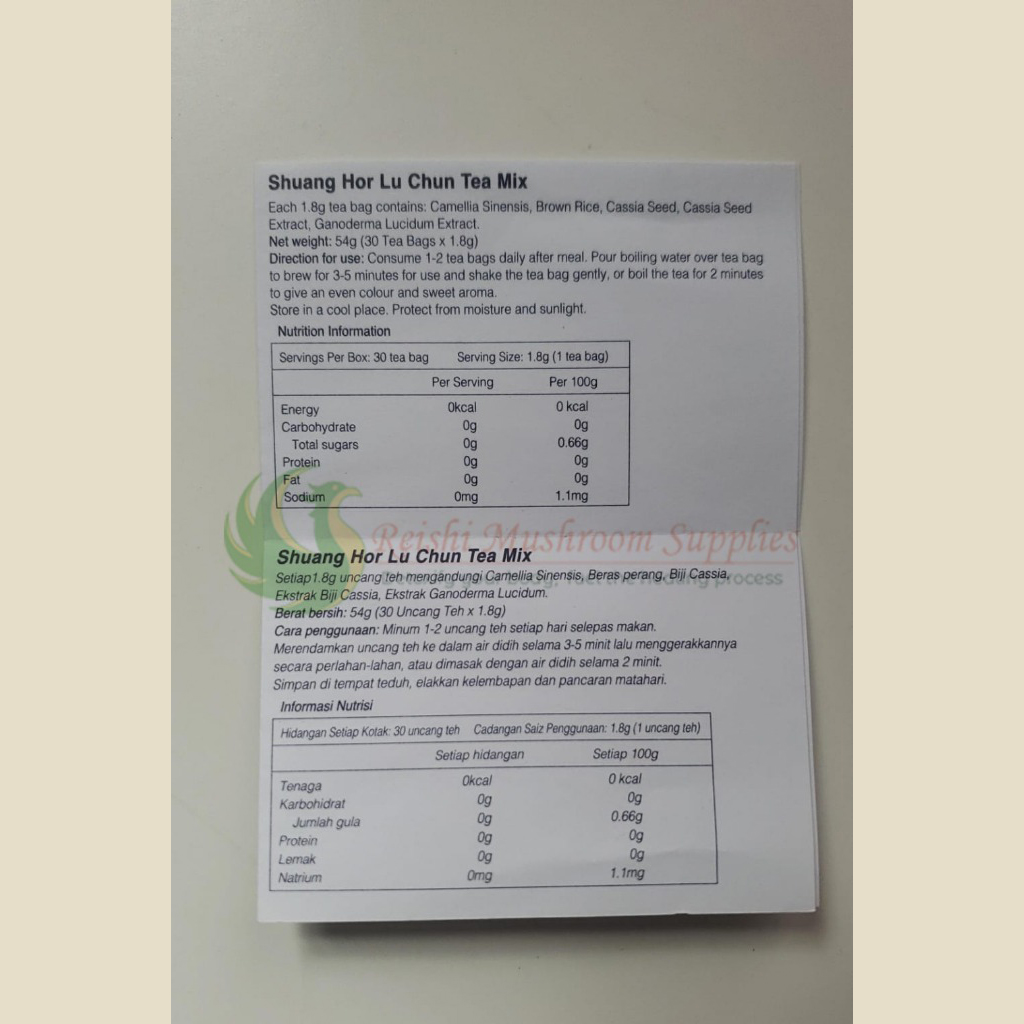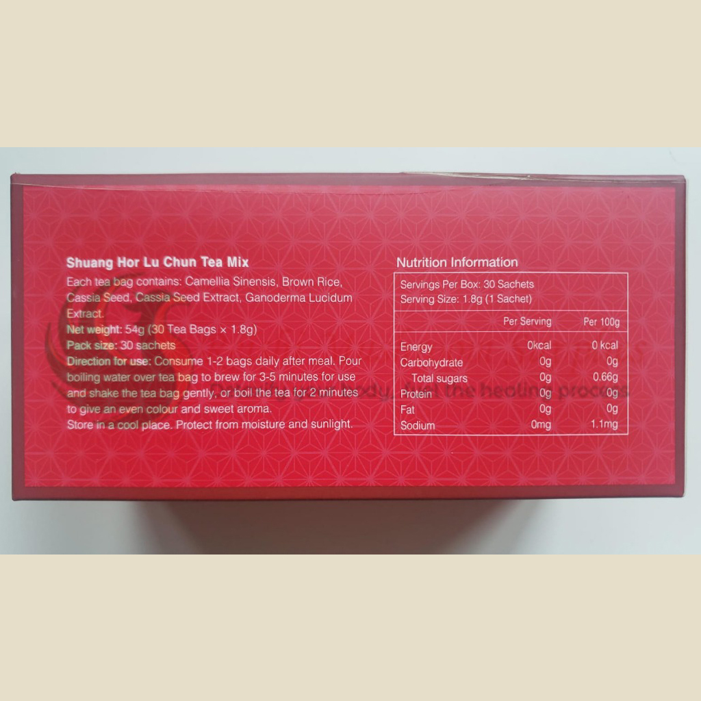 Major constituents: Contains Camellia Sinesis, Brown Rice, Cassia Seed and Ganoderma Lucidum Extract.