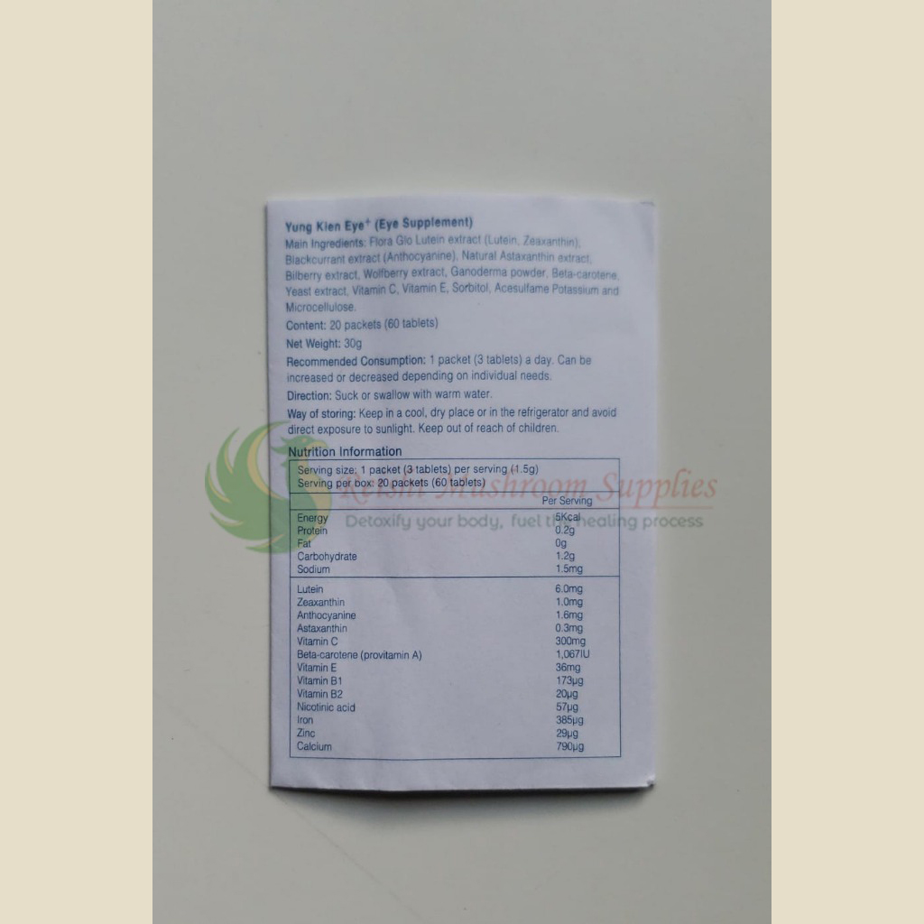 A: That’s perfectly normal. Extensive clinical experiments have discovered that the Lutein content in Yung Kien Eye Plus will initially cause an increase in discharge from the eyes in some while others might feel that their eyes feel more ‘turgid’. These symptoms will disappear after a brief period of consumption.