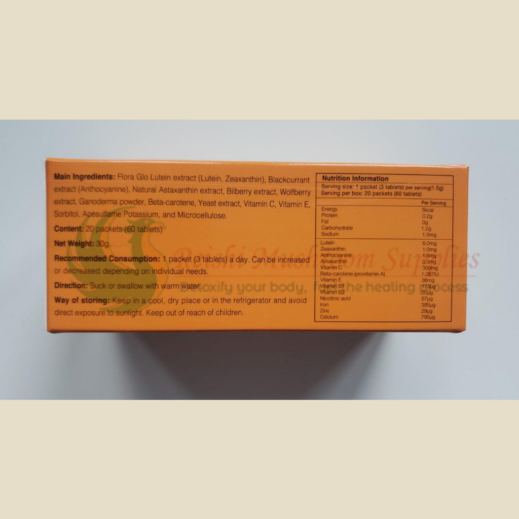 A: The recommended amount for health-care benefits is 3 tablets a day however, a much higher amount is needed for those suffering for eye diseases (for example, Pseudo Nearsightedness or Accommodating Myopia, High Myopic, Retinal Detachment, Glaucoma, Cataract, Diabetic Retinal Degeneration, General Discomfort in the eyes, age-related macular degeneration, Pigmentary Degeneration of the retina, etc.)